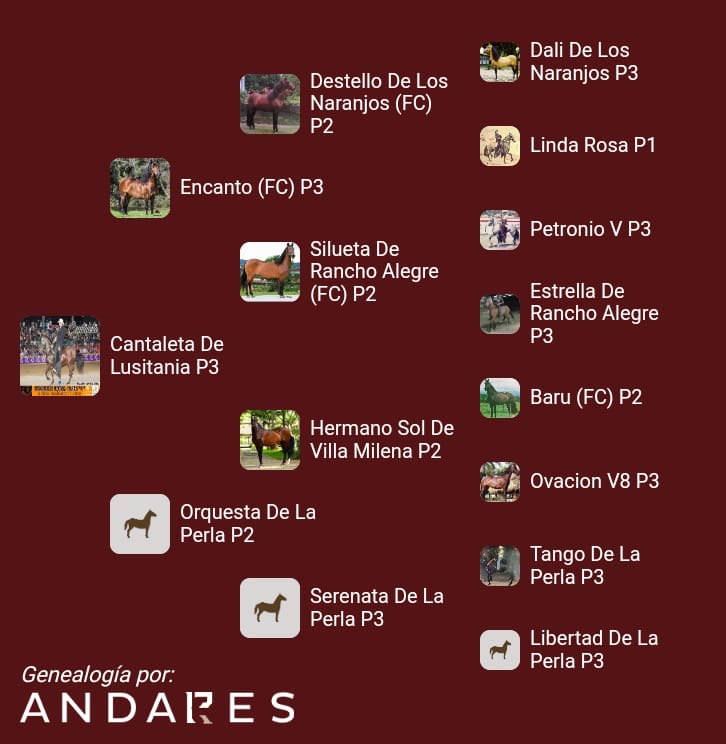 Padre: Encanto Fc Madre: Orquesta de la Perla Abuelos Maternos: Hemano sol x Tango de la Perla