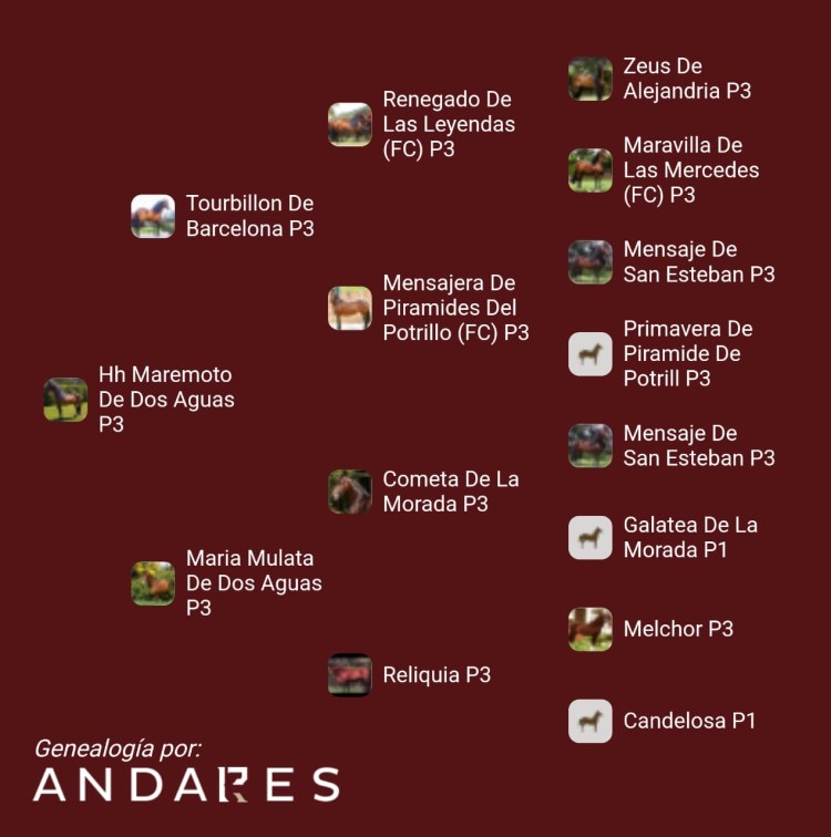 Analizando su pedigree, encontramos que Maremoto es hijo del gran Turbillon caballo que logro estar invicto en las pistas colombianas y que a su vez es hijo de dos estrellas de la trocha como lo son: Renegado de las Leyendas y la Mensajera de Piramides. La madre de Maremoto es la yegua María Mulata yegua de destacadas participaciones en las pistas, ademas María Mulata a su corta edad se ha ido postulando como una de las grandes reproductoras en los aires diagonales, siendo también la madre del Tambo de Dos Aguas, actual campeón reservado trotón galopero de las ferias de las flores. Maria Mulata es la hija de Cometa de la Morada (Mensaje x Embajador de Yolibal) en la reliquia (Melchor x Arco)